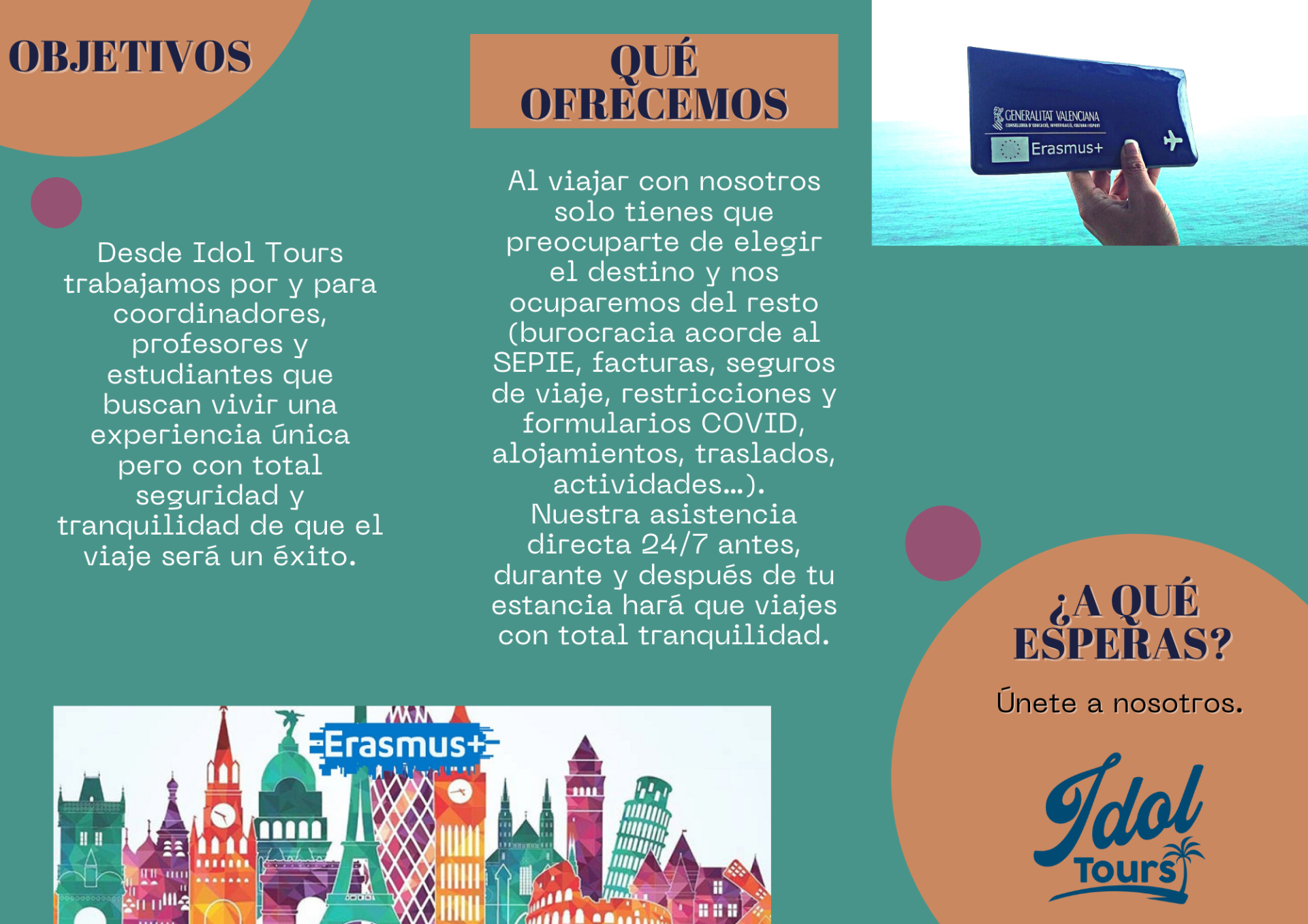 Tenemos experiencia organizando viajes tanto para estudiantes, de todas las edades, como para profesores. Nos ocupamos de organizar el viaje íntegramente (vuelos, alojamiento, transfers, seguros, alquiler de coche en destino...)